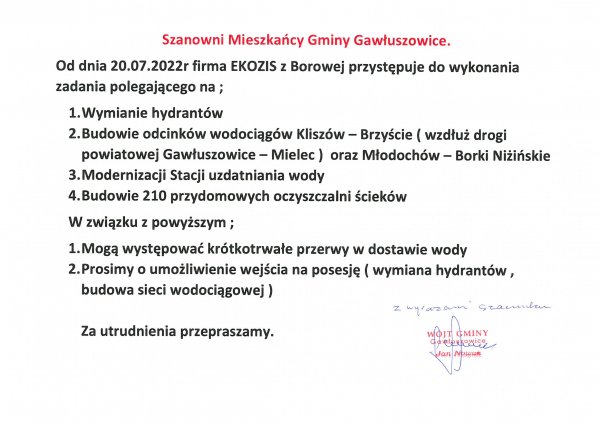 Ogłoszenie realizacja umowy EKOZIS.